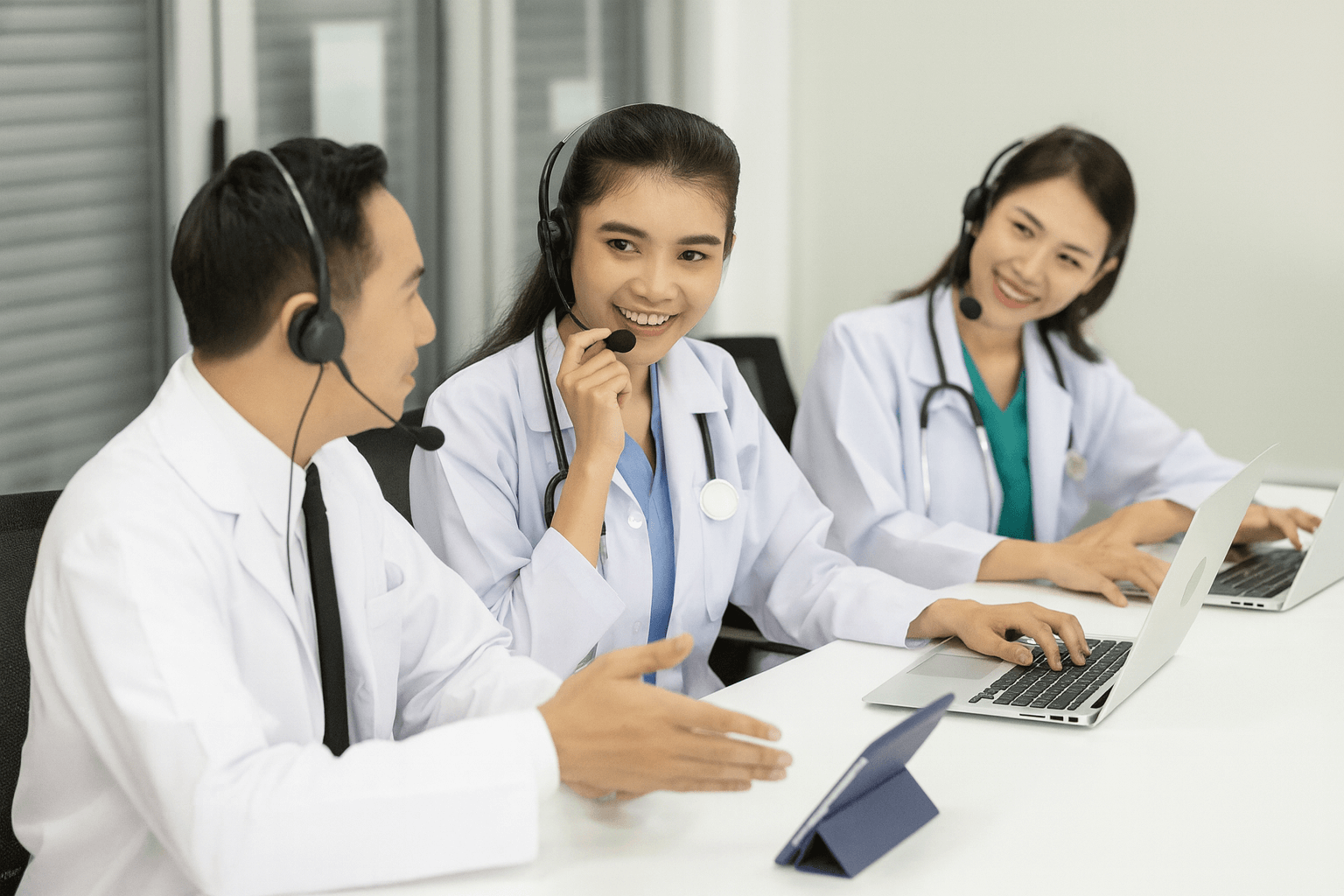 Images from training sessions show these professionals in action, teams practicing tone control, body language for video consultations, and patient-centered phrasing. It’s a reminder that technology can only go so far; understanding completes the experience.